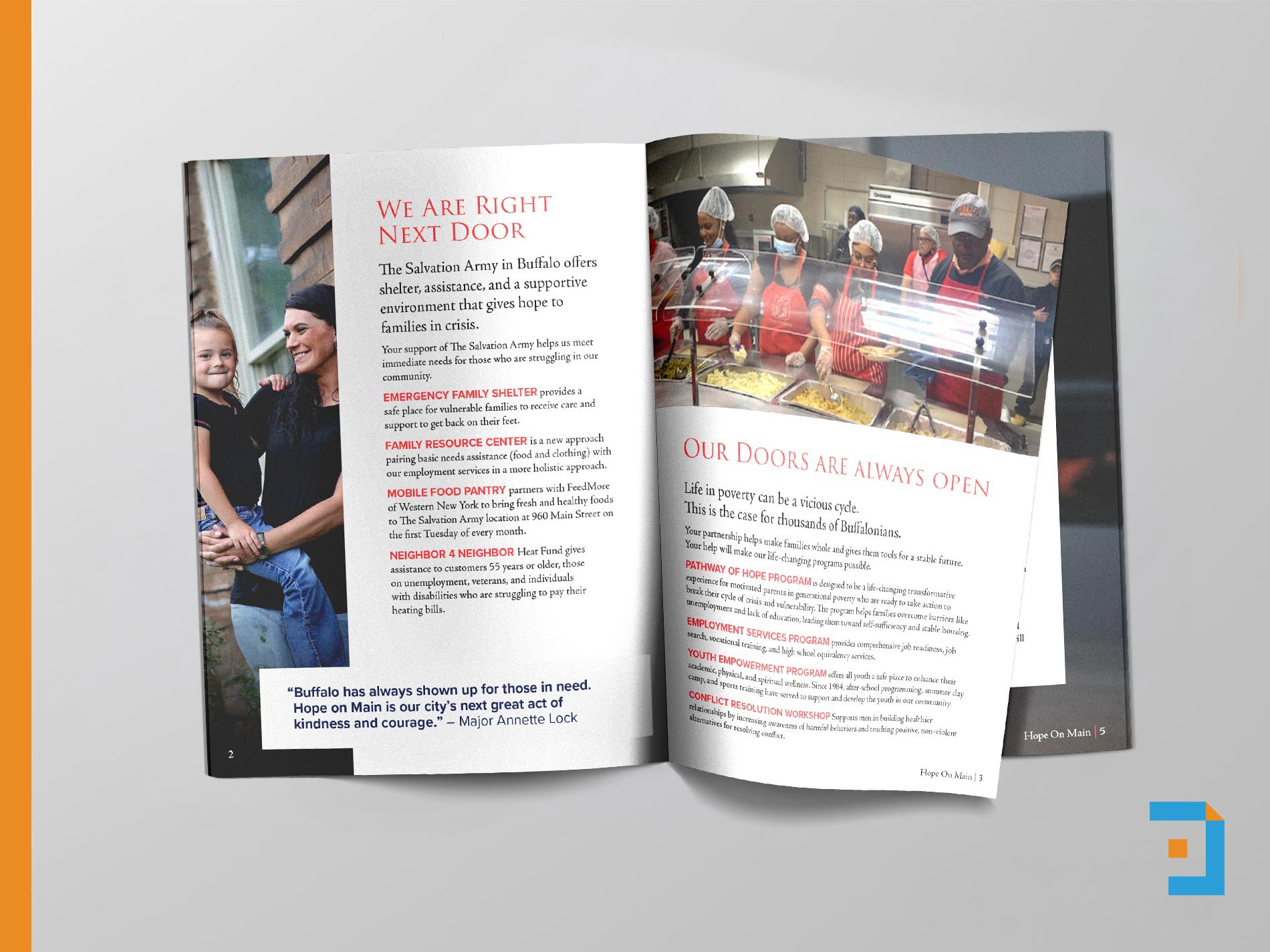 a 16-page case statement for The Salvation Army of Buffalo’s capital campaign, created to support the public phase of a major expansion effort. The piece clearly outlines the need for new and expanded facilities, including shelters and community resource spaces, while telling the broader story of how the organization serves individuals and families across the region. Through thoughtful layout, clear messaging, and supportive visuals, the case statement guides readers from vision to impact, helping donors understand both the urgency of the need and the long-term benefits of investing in the community.