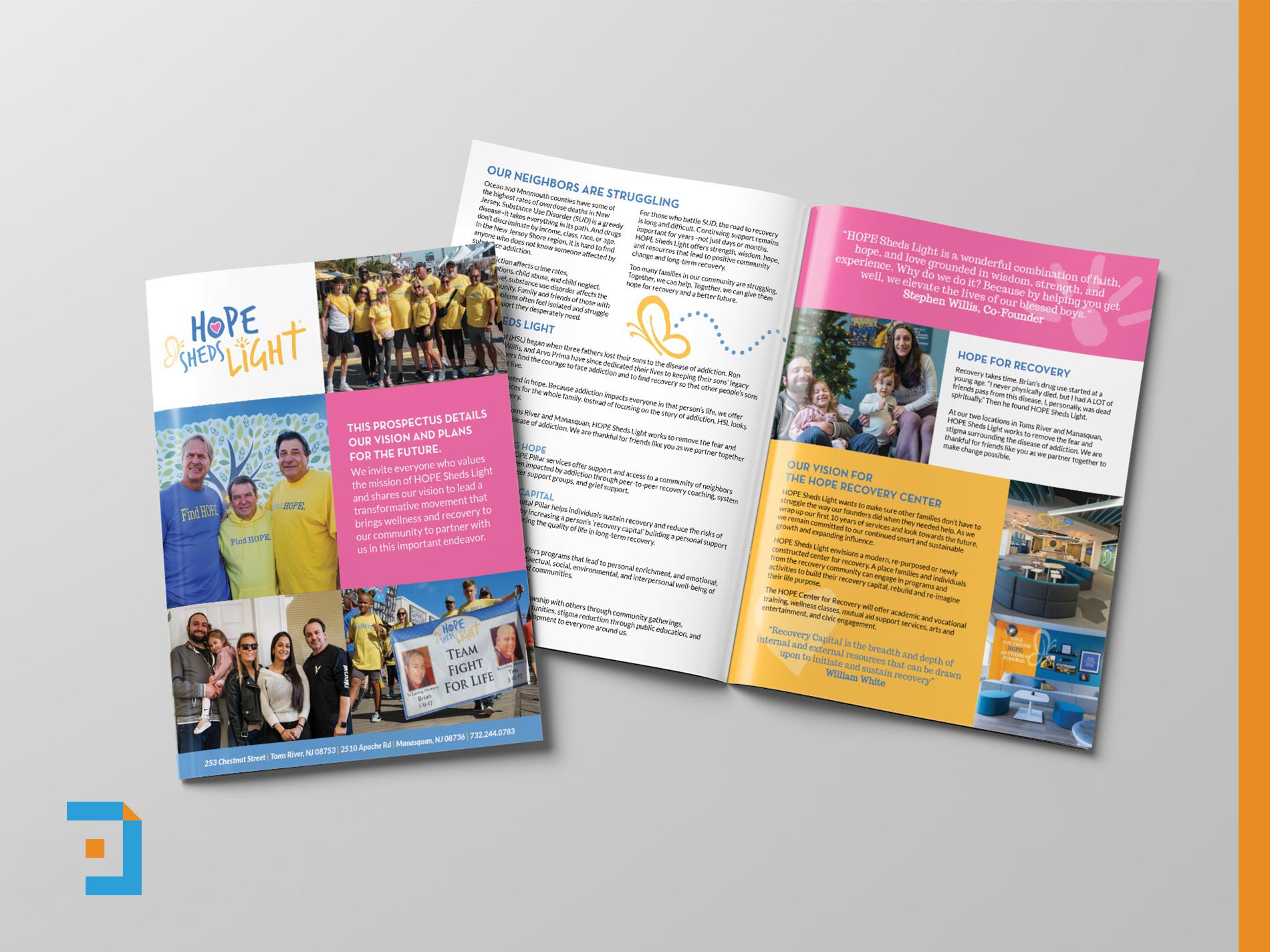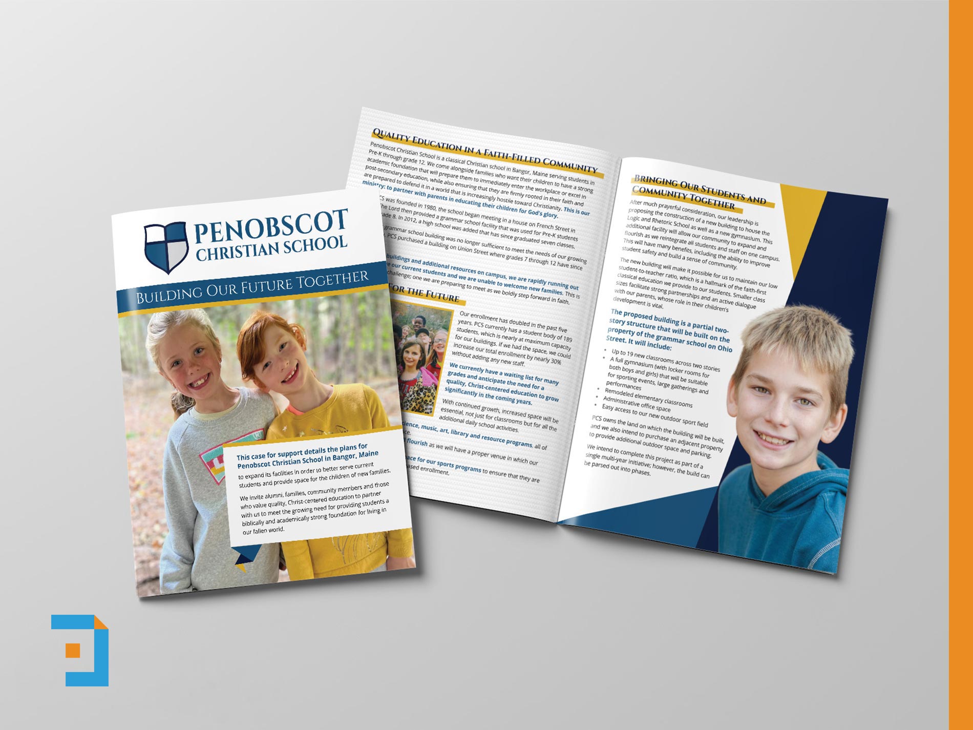A collection of prospectus documents created for different clients to support feasibility studies ahead of capital campaigns. Each piece is designed at 11 × 17 and folded to create a four-page format, making it easy to use during in-person donor meetings. The designs balance clarity and restraint, presenting key information, vision, and funding priorities in a way that supports conversation rather than overwhelms. Together, these samples demonstrate an approach focused on storytelling, credibility, and donor engagement at an early and critical stage of campaign planning.